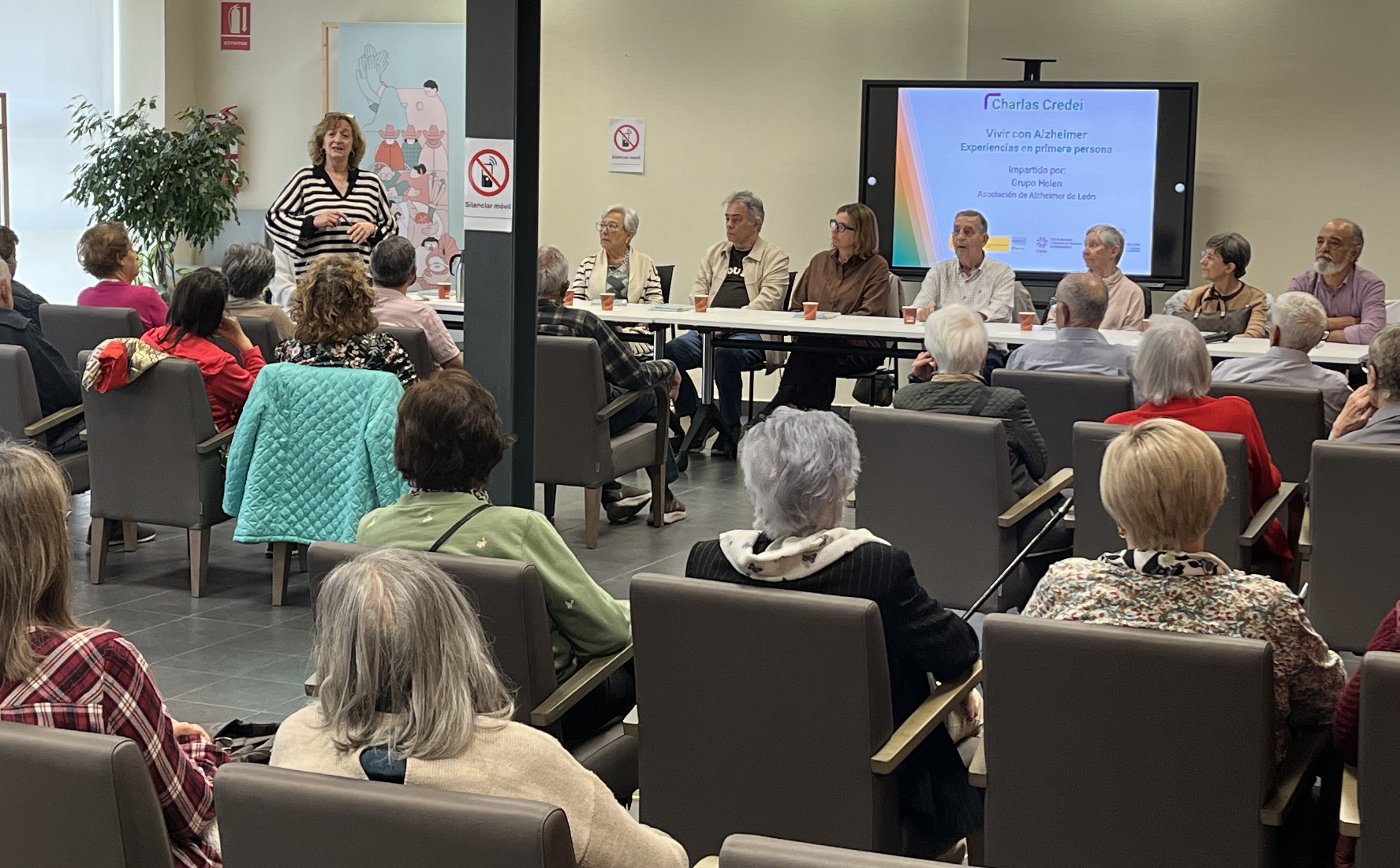 El viernes 17 de abril de 2026, el Centro de Referencia Estatal de Atención a Personas en Situación de Dependencia (Credei) del Imserso en León acogió una charla impartida por el grupo Helen de Alzheimer León, en la que personas con distintos tipos de demencia compartieron sus experiencias personales con el público.